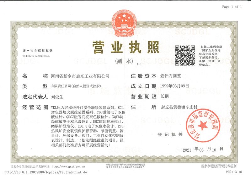 河南省新鄉(xiāng)市啟東工業(yè)有限公司始建于1987年,是專注研發(fā)、生產(chǎn)自動化儀器儀表(主要與壓力容器、鍋爐等容器配套使用)的廠家。主要產(chǎn)品有液位計(磁敏雙色型、磁翻柱型等)系列、烤包器熄火聯(lián)控裝置系列、壓力容器快開門安全聯(lián)鎖保護裝置系列、鍋爐報警器系列。二十多年來,公司產(chǎn)品暢銷國內(nèi)并遠銷俄羅斯、蒙古與東南亞,深得廣大用戶的信賴和好評。我們多年來致力于自動化儀器儀表的研制生產(chǎn),公司現(xiàn)具有完善的生產(chǎn)、試驗、檢測手段和設(shè)備??萍紕?chuàng)新、誠信服務(wù),是我們不變的經(jīng)營理念,我們將以強有力的技術(shù)支持及售后竭誠為客戶提供良好的服務(wù)。  2012年我公司成功研發(fā)了KCL系列烤包器熄火聯(lián)控裝置,并于2013年2月2日榮獲中華人民共和國國家知識產(chǎn)權(quán)局辦法的《實用新型**證書》<**號:2021202257735>該產(chǎn)品廣泛應(yīng)用于唐鋼等大型鋼鐵企業(yè),為烤包器安全作業(yè)提供了有力的保障。  2002年我公司成功研發(fā)磁敏電子雙色液位計獨特的高亮度LED紅綠雙色顯示,獲得了專家的首肯和用戶的一致好評。在此基礎(chǔ)上我公司研發(fā)人員十年磨一劍,致力于XQFB-1防爆型磁敏雙色液位計的研發(fā),于2013年12月27日由國家防爆電器產(chǎn)品質(zhì)量監(jiān)督檢驗中心檢驗合格并頒發(fā)防爆合格證書<編號:cnex19.0883>。該產(chǎn)品性能得到了充分的發(fā)揮,廣泛應(yīng)用于含有Ⅱ類A·B級T1-T4組可燃氣體或蒸汽與空氣混合形成的爆炸性混合物的0區(qū)、1區(qū)危險場所。連接用戶DCS或PLC系統(tǒng)實現(xiàn)遠距離集中顯示和控制,從而實現(xiàn)節(jié)能、數(shù)字化管理。為用戶增加了一定的經(jīng)濟效益和社會效益,。2014年公司成功申請了夢潤儀表的logo,新的品牌新的形象,夢潤儀表是啟東的LOGO, 歡迎新老用戶前來洽談合作。  我們一如既往地注重科研的投入,憑借產(chǎn)品的不斷更新、加大科技含量,進一步拓展市場。我們相信品質(zhì)成就未來,以過硬質(zhì)量、優(yōu)惠價格、完善的售后服務(wù)熱忱歡迎廣大客戶來我司視察指導(dǎo)、洽談業(yè)務(wù);精誠合作,共創(chuàng)輝煌!